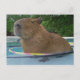 Caplin Rous sentado en la piscina con aros de hoola puestos