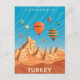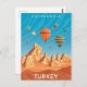 Este diseño fresco presenta un afiche de viajes de las antiguas casas de acantilados de Cappadocia Turquía, con coloridos globos de aire caliente volando alto en el cielo. #cappadocia #turkey #cool #old #old #hotairbalons #cuevas #cavehouses #colorido #bright #moderno #travel #explore #adventure