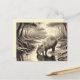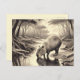 Esta postal con un capibara bebiendo de un arroyo entre árboles y raíces arbóreas, tiene el aspecto de un grabado antiguo. Es una gran tarjeta postal para mandar a alguien que le guste los capibaras y el arte y los ilustraciones vintage.