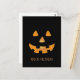 Postal Cara de calabaza de Halloween en fondo negro