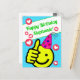 Haz saber a alguien especial que te importa con esta Tarjeta de Feliz Cumpleaños personalizada con tu nombre, cara sonriente y corazones en azul turquesa divertida y con pulgares hacia arriba de Zazzle. Disponible en varios tipos de papel. Con líneas y corazones estampados en la parte posterior para un toque de amor y por tu conveniencia. Se vende con o sin sobres, por tarjeta o en cantidades de dos o más. Cómprala tal cual o personalízala fácilmente con el nombre de la persona que cumple años. Ideal para niños y para aquellos que son niños de corazón que aman las caras sonrientes y la diversión.