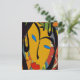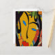 Postal Cara y flores abstractas