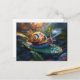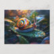 Postal Caracol arco iris en hoja