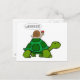 Una tortuga verde avanza a su ritmo lento habitual. Un caracol (con casco de choque y gafas de carreras) se sienta en la cima, gritando "¡RAEE!", aparentemente emocionado por el viaje a velocidad de warp. Como tantas cosas, TODO es una cuestión de perspectiva, ¡¿verdad?! Puede cambiar el color de fondo, si lo desea, utilizando las opciones PERSONALIZAR y EDIT. También hay mucho espacio para añadir un mensaje personalizado o un nombre.