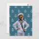 Divertido collage digital náutico de un lindo perro con traje de marinero blanco y azul sobre un papel de fondo azul verde azulado y anclas de barcos gris plateado. Visita la tienda VINTAGEPRINTSTORE para encontrar productos y caricaturas de animales más locas. Diseño de derechos de autor por Oconnart