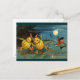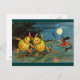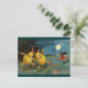 Una hermosa postal vintage de Halloween con dos personajes de calabaza huyendo de una bruja.
