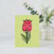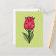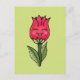 Postal de chica floral con un ilustracion vectorial que representa a un personaje de caricatura floral que se parece a un tulipán y a un rosa que sonríe alegremente. Este divertido ilustracion de primavera tiene colores vivos rojos y verdes.