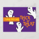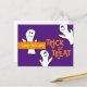 Haz que tu Halloween sea fresco y dulce. Estos adorables fantasmas sonríen a lo largo de la temporada. Trick o Treat con letras divertidas. Fondo púrpura y colores naranja y blanco y amarillo. Un fantasma feliz sostiene un cartel que dice Candy de esta manera. Listo para ir como está. Si te gusta puede ser personalizado. Puede agregar más mensajes según sea necesario. ¡Difundan la palabra para una Halloween segura y no espeluznante!