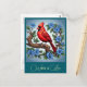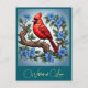 Un impresionante cardenal rojo se sienta orgullosamente en una delicada rama de árbol rodeada de flores brillantes azules. Los detalles intrincados y los colores llamativos evocan una sensación de alegría y serenidad.