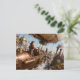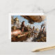 A woman skillfully pilots her airship through clock towers, smokestacks, and domes on this charming steampunk postcard.