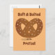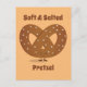 Postal con un caricaturista de pretzel sonriente y las palabras "Pretzel suave y salado".