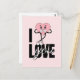 Expresa tu amor de una manera única y juguetona con nuestra "tarjeta postal de San Valentín con un personaje encantador". Esta carta deliciosa tiene un fondo rosa claro, que establece el escenario para un personaje adorable del corazón que trae el mensaje del amor a la vida. El corazón, con sus ojos bonitos y las manos guantes blancas, parece abrazar tímidamente, añadiendo una cualidad entrañable a la carta. Es como si el corazón se sonrojara con la alegría y la timidez del amor. El personaje está posicionado frente a letras negras y audaces que deletrean "TE AMO", con la palabra "AMOR" escrita con estilo en un guión fluido y cursivo que se superpone con las otras letras, agregando un toque artístico al diseño general. La "tarjeta postal del Corazón de Encanto de San Valentín" es más que una postal; es una manera divertida y sentida de mostrar tu afecto. Perfecto para todas las edades, seguro que pondrá una sonrisa en la cara de cualquiera que la reciba.