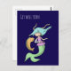 Tarjeta de recuperación con ilustración de una sirena con brazo roto. El pececito está decorando su escayola. El texto dice "Recupérate pronto", pero puedes personalizarlo y cambiar la fuente, color y tamaño. Ilustración de Patricia Alvarez.