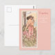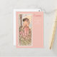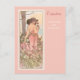 Una postal de arte fino con el ilustracion vintage de Alphonse Mucha de The Flower Series, Carnation (1898), que ha sido restaurado y mejorado digitalmente. Retrato de una mujer con vestido rosa rodeada por un campo de claveles rosados y blancos.