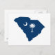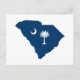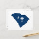 La forma de Carolina del Sur en azul con blanco con el palmetto familiar y la media luna. Crea tu propia nueva dirección o mudando postal para tu nuevo pueblo de SC. Agregue su mensaje al reverso en blanco.