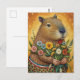 Postal Carpincho con arte popular de flores