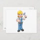 Caricaturista mujer carpintero caricaturista sosteniendo un martillo y dando un pulgar hacia arriba