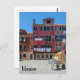 Pintura de la plaza de Venecia. Carro con cajas en medio de la antigua plaza italiana con edificios coloridos en Venecia, Italia. Servicio postal de entrega en Italia. Cajas en paz.