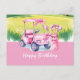 Postal Carro de Golf con Feliz Cumpleaños Golfista Mujer
