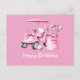 Tarjeta Postal de Carro de Golf con Golfista Mujer Cumpleaños Feliz ROSA