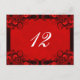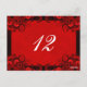 © Sunny Mars Designs - Floral Hibiscus: Dark Red on Red Boda Table Number Cards - Moderno, elegante, moderno, moda, personalizado de personalizable impresión tarjeta de número de mesa de la recepción de boda con rojo oscuro, rojo oscuro, rojo oscuro, borgoña, rubí o marrón giratorio diseño floral de hibiscos tropicales sobre un fondo rojo brillante.