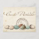 Parte de un conjunto de cuatro partes. Collage vintage de una postal con el título "Carte Postale" y la marca francesa junto a una hilera de huevos de ave de colores hermosos: moteados, marrones y azules. El reverso viene de la parte trasera de una postal francesa vintage.