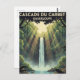 Retro illustration of the Carbet Waterfall in Guadeloupe, surrounded by lush jungle and tropical light. A unique postcard, perfect as a travel souvenir, wall decor, or exotic gift.