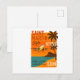 Carte postale rétro illustrée de Saint-Martin (97150 – SXM), avec avion en approche, plage turquoise, palmier et coucher de soleil orange. Style vintage unique inspiré des travel posters classiques. Parfaite comme souvenir des Antilles, cadeau voyageur ou décoration murale encadrée. Papier haute qualité, impression nette.
