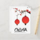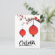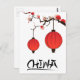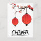 Cartel de China Lanterns Travel. Linternas de fuego en un cielo chino colgando de una rama de un árbol en flor.