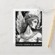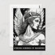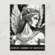 Una postal en blanco y negro con la presencia de Atenea, la diosa griega de la sabiduría, la guerra y la artesanía. La postal cuenta con un detallado dibujo de la línea de arte de Athena, representado como un guerrero feroz en un estilo minimalista en blanco y negro. Atenea es la diosa griega de la sabiduría, la guerra y la artesanía. Es uno de los doce dioses olímpicos y la hija de Zeus y Metis. Athena era conocida por su inteligencia, pensamiento estratégico y habilidad en la batalla. También era conocida por su patrocinio de las artes y la artesanía, en particular el tejido. En mitología, a Atenea se le describía a menudo como un guerrero feroz, con armaduras y llevando una lanza y un escudo. También se la representaba a menudo usando un casco y sosteniendo una lechuza, lo que simbolizaba la sabiduría.
