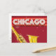 Postal Cartel de viaje en saxofón de Chicago.