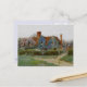 Pintura de arte fino de casa cubierta de viñas azul pálido. El entorno incluye una bandada de pollos. Arte fino de la pintora inglesa Helen Allingham