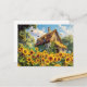 serena casa de campo rodeada de girasoles vibrantes, pintada en un detallado estilo de pintura al óleo. Esta obra de arte capta el encanto de la vida rural a finales del verano.