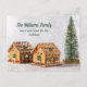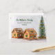 Una linda tarjeta postal de Navidades moviendo invitación con una casa de pan de bonito y una foto de un árbol de abetos. Tenemos un nuevo hogar para las vacaciones. Un elegante cambio de dirección postal de vacaciones para una familia que se mudó durante el invierno.