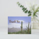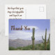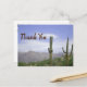 Los alquileres de casas se están volviendo cada vez más populares y competitivos. Distinga su alquiler de la competencia con esta postal económica. Esta postal presenta una hermosa fotografía del paisaje desértico del área de Phoenix, Arizona. Los altos cactus saguaro se mantienen erguidos contra el cielo azul decorado con nubes largas y tenues. Las montañas distantes añaden profundidad a esta foto y transmiten los vastos espacios abiertos de Arizona. "Gracias" aparece en la parte delantera y la parte trasera presenta palabras de agradecimiento para su invitado y el deseo de volver a verlos pronto. Todo el texto puede ser personalizado según sus necesidades.