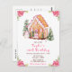 Postal Casa de pan de jengibre rosa para fiesta de cumple