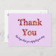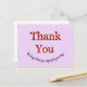 Los alquileres de casas y habitaciones se han vuelto cada vez más populares durante los últimos años. Haz que tu alquiler se destaque con esta postal brillante y alegre que proporciona un seguimiento brillante y alegre y una impresión final en tu invitado. Las palabras "gracias" aparecen en un diseño de tie-dye en esta postal económica. El texto "Esperamos que hayas disfrutado tu estancia" se puede personalizar y forma una "sonrisa" en la parte inferior de la postal. El texto en el reverso también se puede personalizar y permite un amplio espacio para enumerar tus nombres o la dirección de la casa. El color de fondo sólido también se puede personalizar si lo deseas.