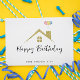 Postal Casa dorada con globos Feliz Cumpleaños Inmobiliar