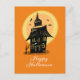 Postal Casa Embrujada Feliz Halloween Negra Naranja