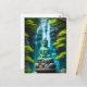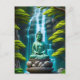 Estatua tranquila de buddha sentada al lado de una cascada.