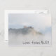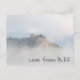 Postal del histórico castillo Bled, construido sobre las rocas a lo largo del lago Bled, rodeado de nubes y niebla de tierra, como si se tratara de un castillo construido en el cielo, en Bled, Eslovenia, con el texto "Amor de BLED".