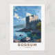 Diseño de viaje vector retro Bodrum. Bodrum es una ciudad de la península de Bodrum, que se extiende desde la costa suroeste de Turquía hasta el mar Egeo. La ciudad cuenta con bahías gemelas con vistas al castillo de Bodrum.