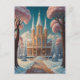 Un majestuoso castillo de fantasía surge de un paisaje prístino y nevado, rodeado por un bosque de encantadores árboles rosas. Las montañas cubiertas de nieve atraviesan el horizonte, sus picos bañados en el resplandor etéreo de un sol abrasador. ¿Sabías que en los tiempos medievales, el rosa era considerado un color de poder y prestigio? Las imponentes torretas y batallas del castillo hablan de una rica historia, mientras que las delicadas flores de los árboles circundantes dan a entender un lado más suave y mágico de la fortaleza.