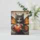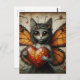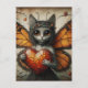 Un adorable gato hada con alas de mariposa envuelto en espinas y sosteniendo un corazón de vidrio fracturado