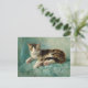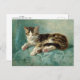 Una postal de arte fino victoriana con la pintura del artista holandés-belga Henriëtte Ronner-Knip (1821-1909), titulada Cat Nap. Un gato tricolor sereno tomando una siesta en un cojín verde.