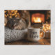 Postal Cat Sleeping Next to a 'Happy Holidays" Mug