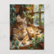 Postal Cat Sleeping on Window Sill Among Flower Vines