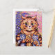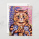 Una postal de arte fino que presenta un ilustracion animal del artista inglés Louis Wain (1860-1939), mejor conocido por sus retratos de gatos Este ilustracion en particular muestra a un gato madre de color jengibre sorprendido sosteniendo tres gatitos, dos de ellos azules, colocados sobre un fondo de papel pintado.
