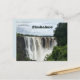 Esta postal presenta las cataratas Victoria en Zimbabue. Se cree que David Livingstone fue el primer europeo en ver las cataratas y las nombró en honor a la reina Victoria de Gran Bretaña. El nombre en idioma indígena Lozi, Mosi-oa-Tunya—"El humo que truena" es usado comúnmente también. Otro nombre que se usa es Seongo o Chongwe, que significa "El lugar del arcoíris" como resultado de la constante aspersión.