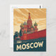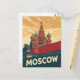 Esta elegante tarjeta ofrece un ilustracion de estilo vintage de la emblemática catedral de San Basil en Moscú, Rusia. El diseño captura las cúpulas únicas y coloridas y las paredes clásicas de la fortaleza con una textura retro angustiada. La paleta de colores muda y la tipografía audaz y angustiada de "MOSCÚ" le dan la sensación de un afiche de viajes clásico. Es el recuerdo perfecto o el saludo para cualquier amante de los viajes, la historia o la arquitectura única.
